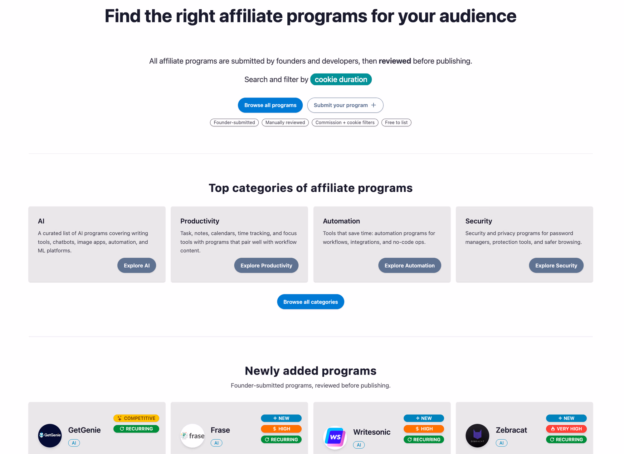 It also forces clarity. To be listed, a program needs clear basics (commission, cookie duration, payout terms, etc.). That makes the offer easier to evaluate and can improve conversion from “interested creator” to “applied and promoting.”