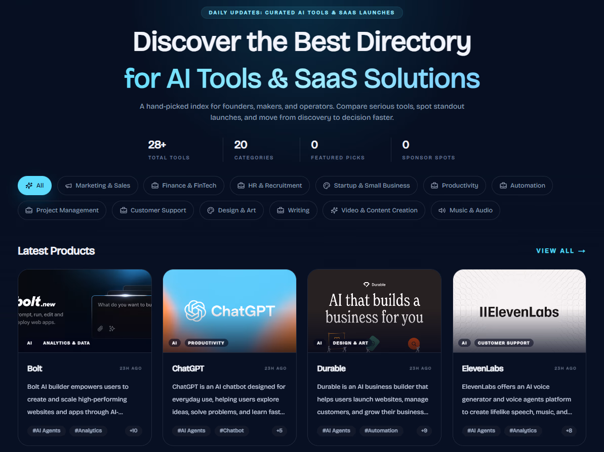 A hand-picked index for founders, makers, and operators. Compare serious tools, spot standout launches, and move from discovery to decision faster.